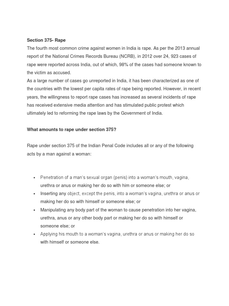 Rape under section 375 of the Indian Penal Code includes all or any of the following