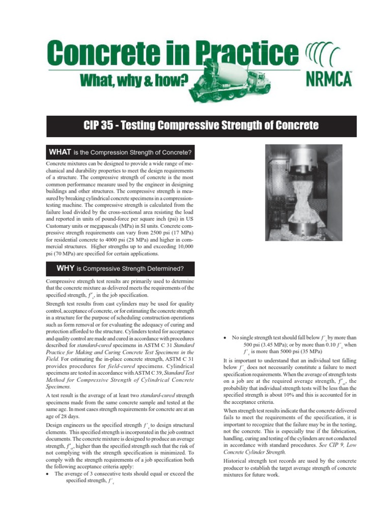 • The concrete strength is calculated by dividing the maximum Publication 133, NRMCA RES Committee, NRMCA, Silver Spring,