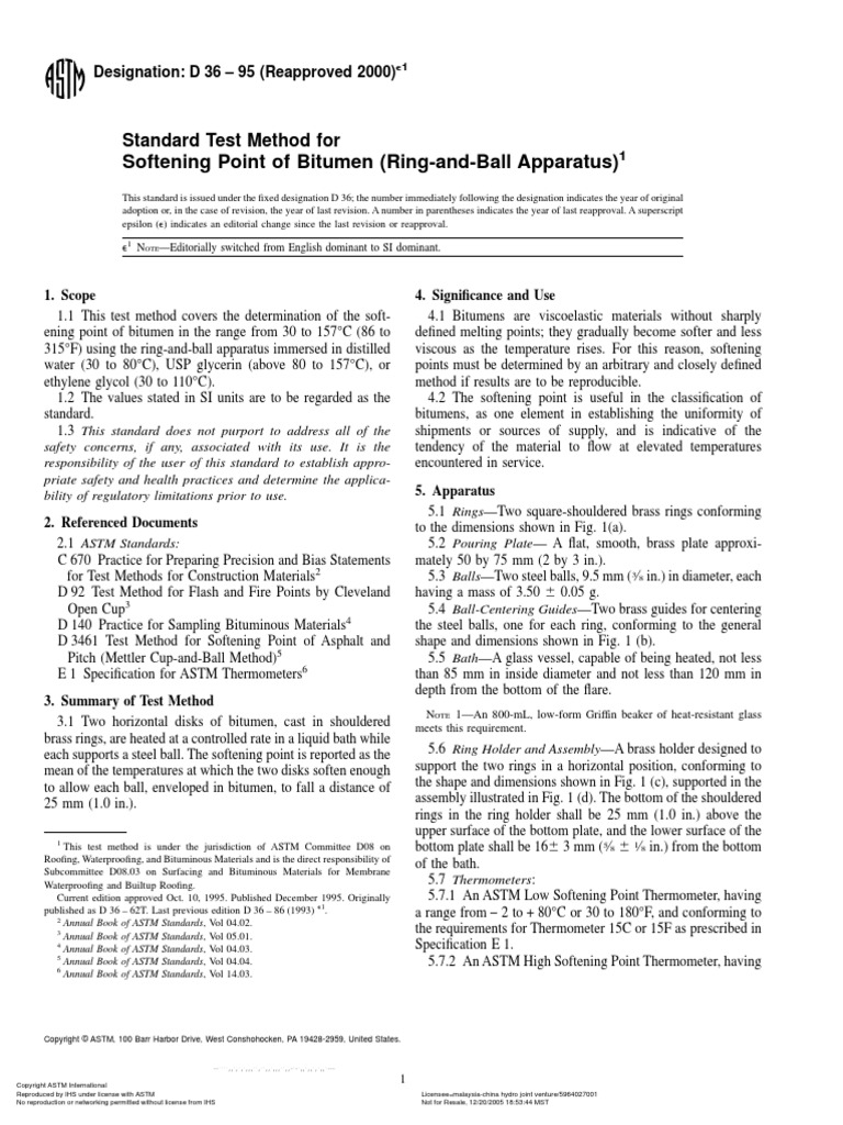 temperatures recorded in 9.6 as the softening point. operator on the same sample of bitumen should not differ by
