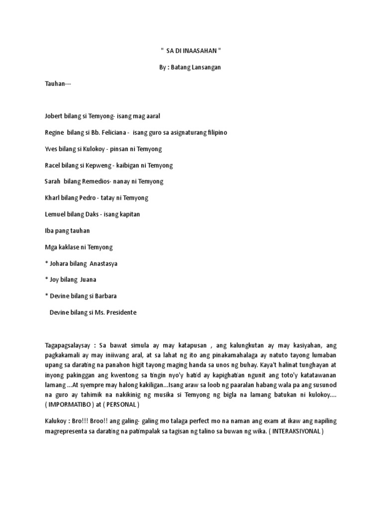 inyong pakinggan ang kwentong sa tingin nyo'y hatid ay kapighatian ngunit ang toto'y katatawanan