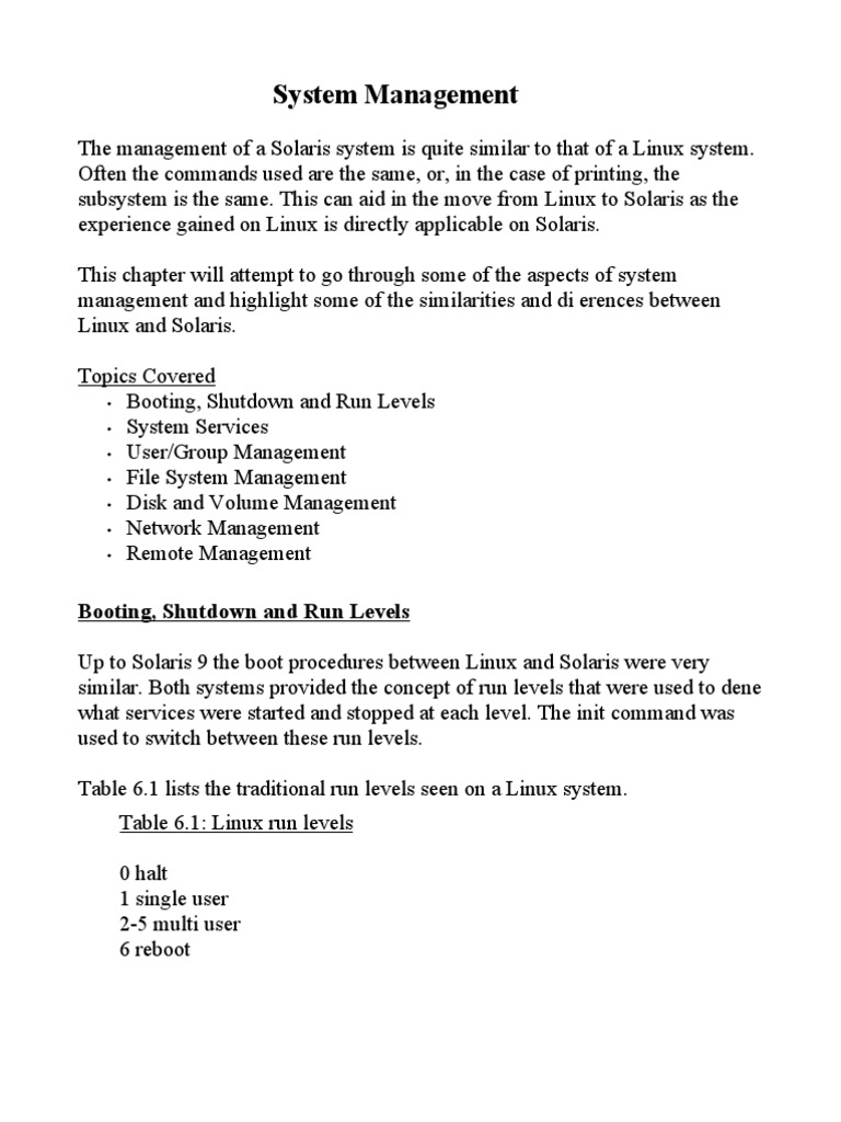 The management of a Solaris system is quite similar to that of a Linux system.