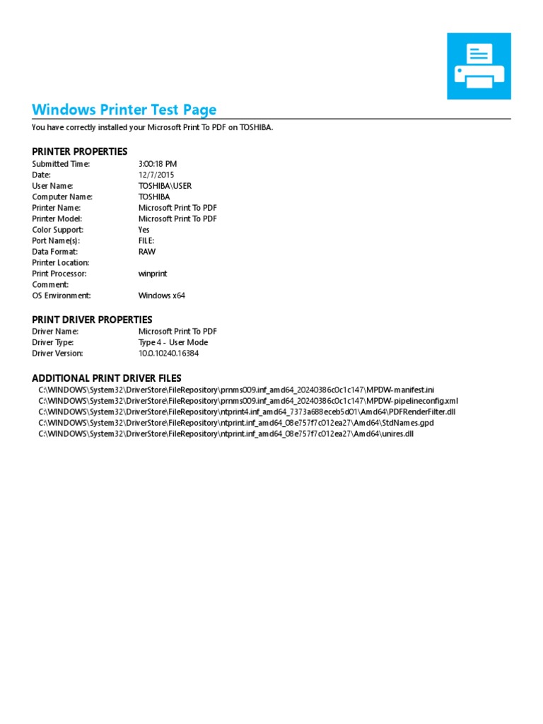 You have correctly installed your Microsoft Print To PDF on TOSHIBA.