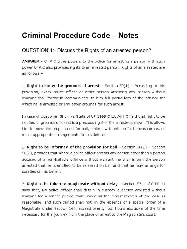 power Cr P.C also provides rights to an arrested person. Rights of an arrested are