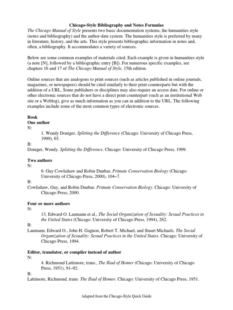 The Chicago Manual of Style presents two basic documentation systems, the humanities style
