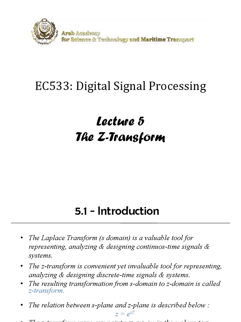 Mapping between S-plane & Z-plane is done as follows: L.H.S.