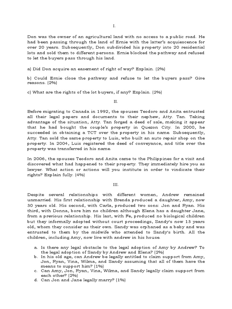 a) Did Don acquire an easement of right of way? Explain. (2%)