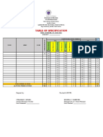 TABLE OF SPECIFICATION IN MAPEH