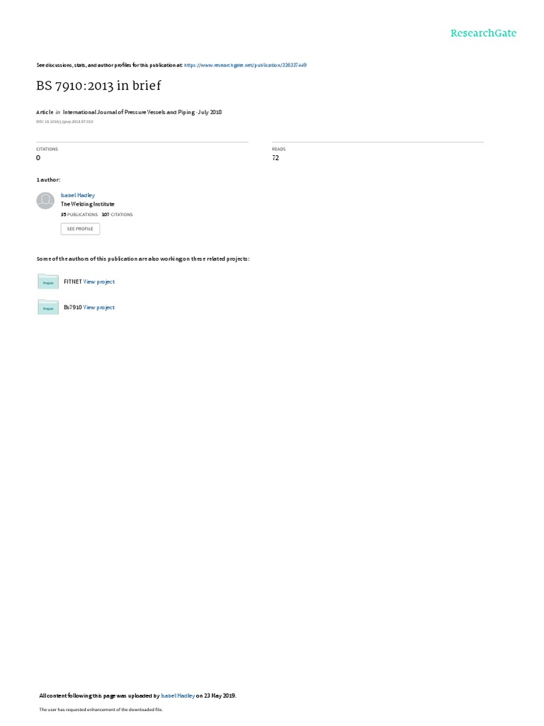 ISO BS ISO 2[Link] ‘Metallic General 2016 Cites BS 7910