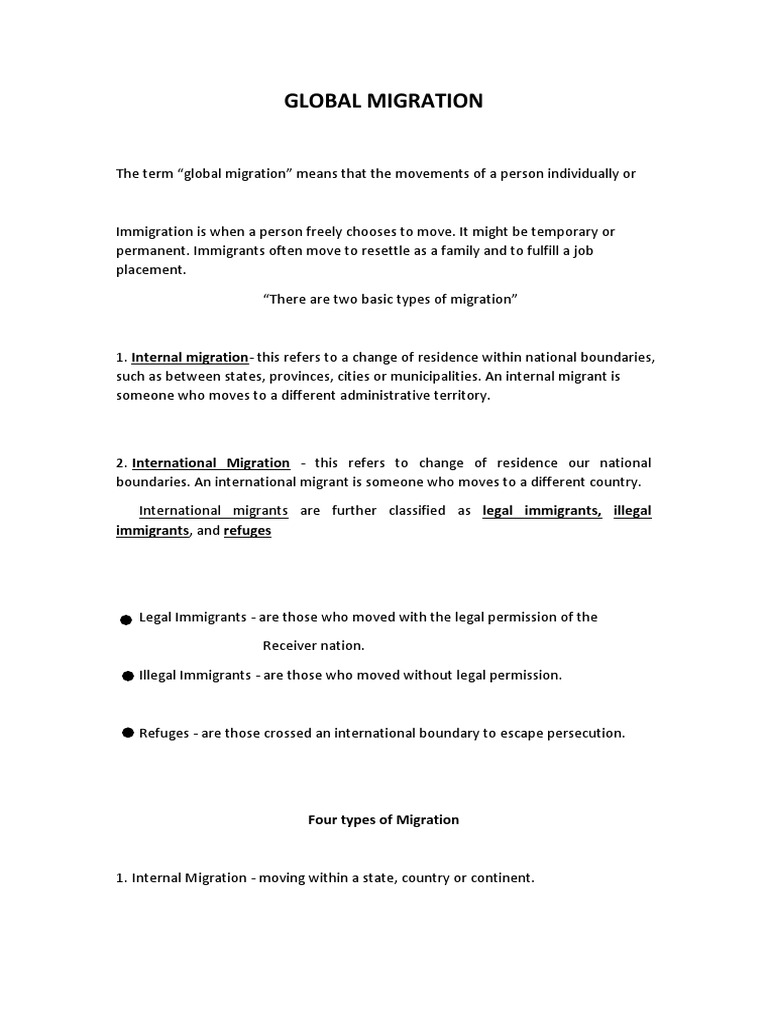 The term “global migration” means that the movements of a person individually or