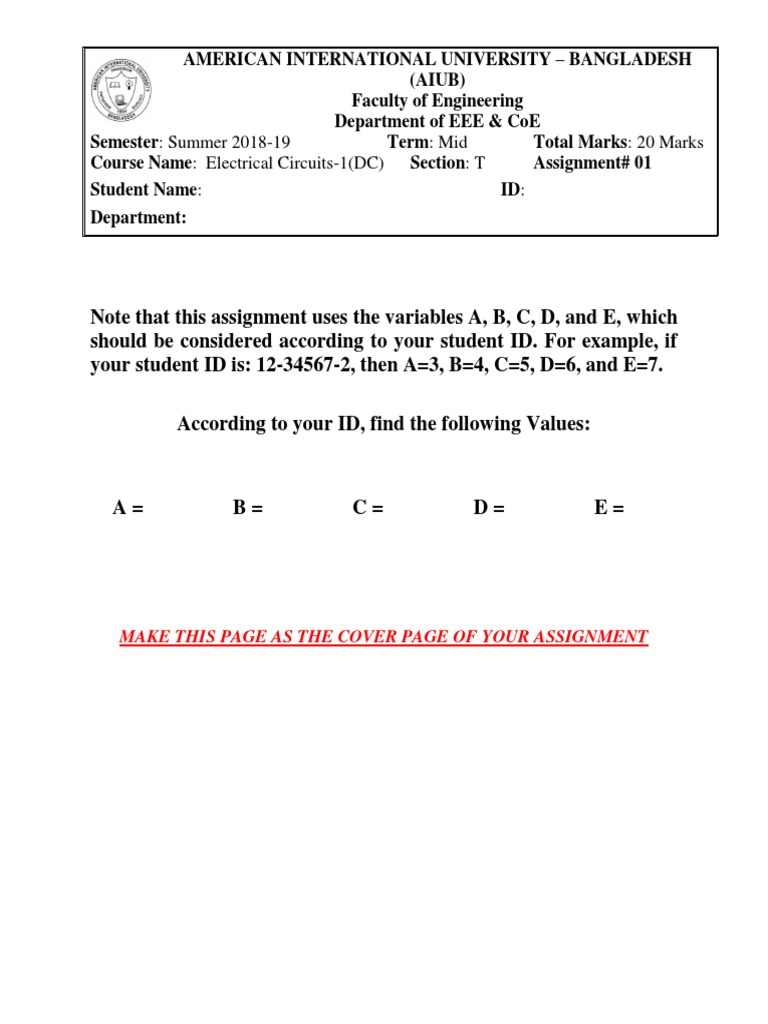 Course Name: Electrical Circuits-1(DC) Section: T Assignment# 01