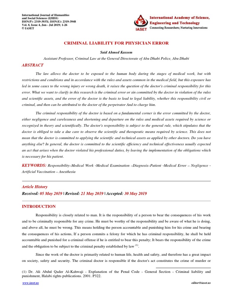42. Dr..Abdulwahab Omar Al-Batrawi - The Criminal Responsibility of Physicians - The Arab Journal of Security