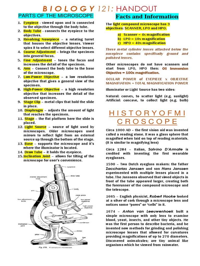 PARTS OF THE MICROSCOPE Facts and Information