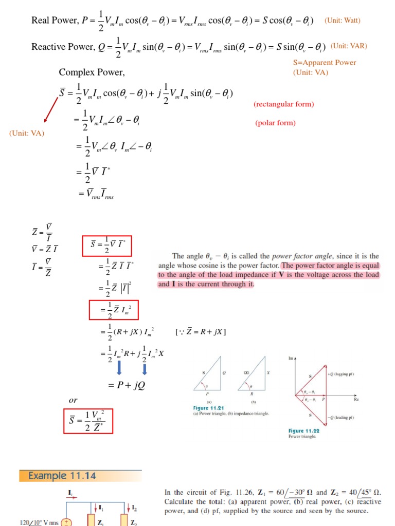 Real Power, P = Vm I m cos( v − i ) = Vrms I rms cos( v − i ) = S cos( v − i ) (Unit: Watt)