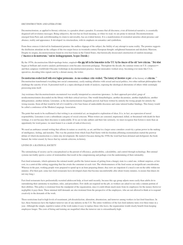 Deconstructionism, as applied to literary criticism, is a paradox about a paradox: It assumes that all discourse, even all historical narrative, is essentially
