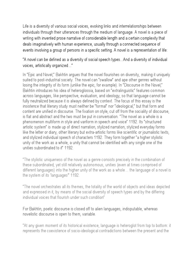losing the integrity of its form (unlike the epic, for example). In “Discourse in the Novel,”