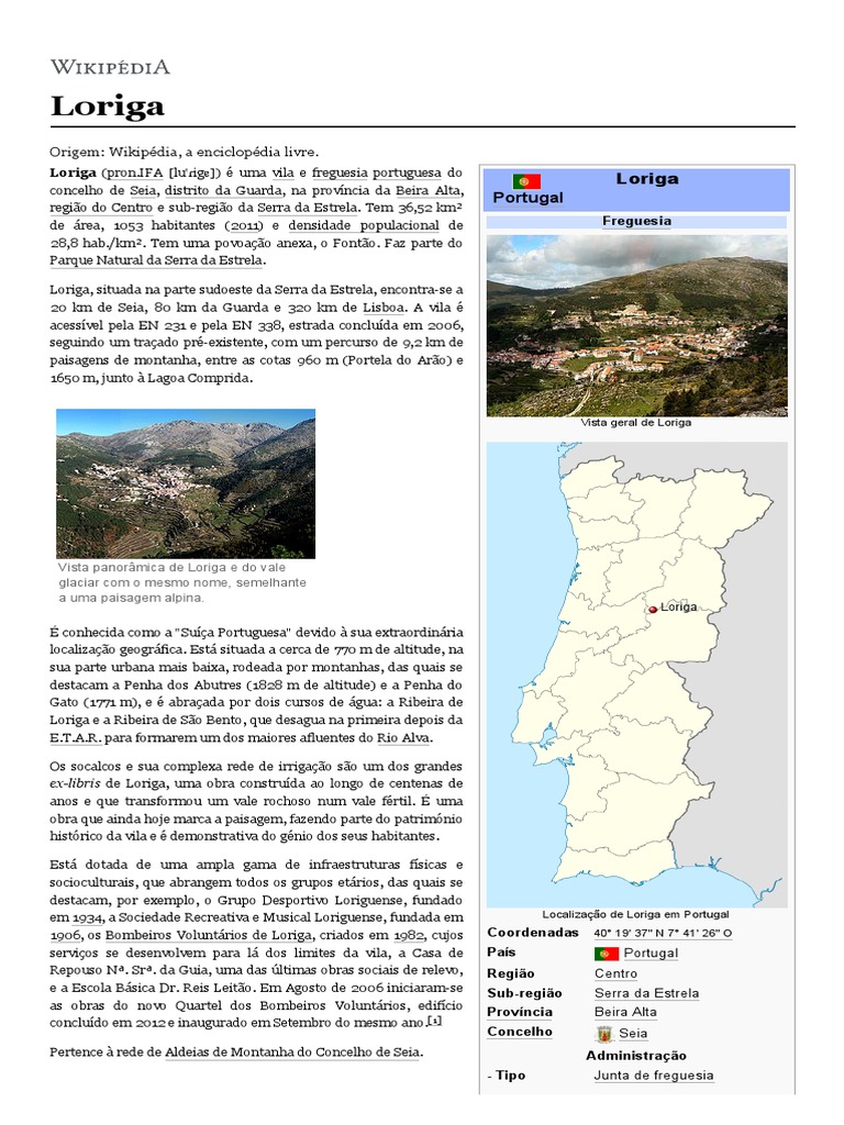 Portugal estão localizadas na Serra da Estrela, dentro da área da freguesia de Loriga.