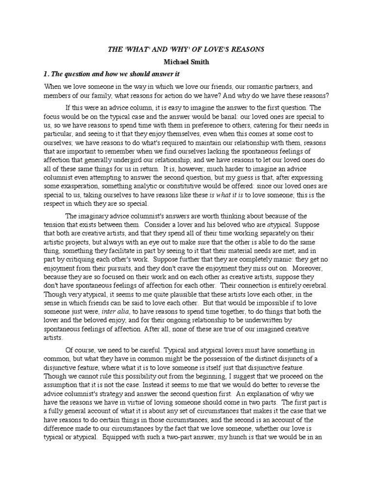 reasons to do whatever they desire to do. According to the account of love offered here, a crucial