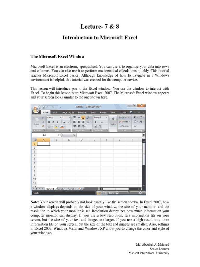 teaches Microsoft Excel basics. Although knowledge of how to navigate in a Windows