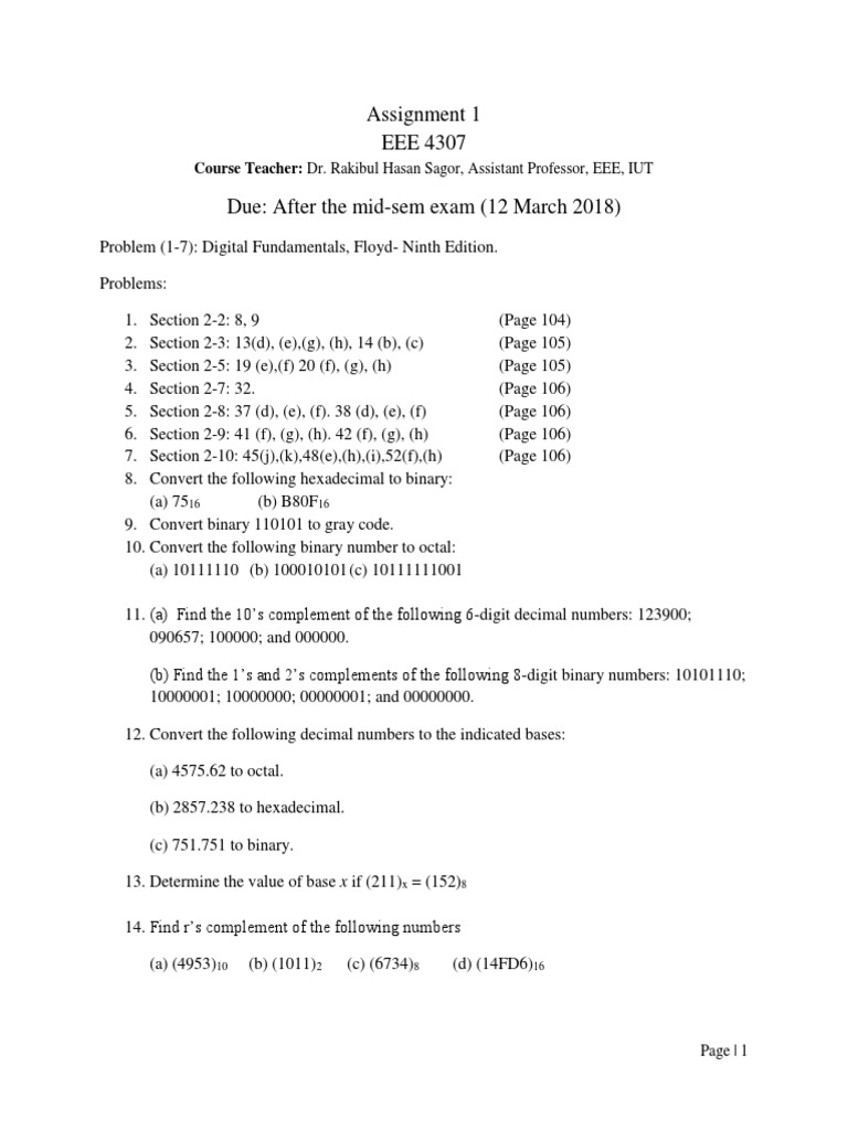 Course Teacher: Dr. Rakibul Hasan Sagor, Assistant Professor, EEE, IUT