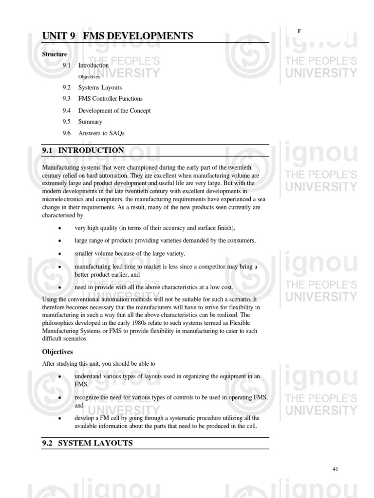Please refer preceding text for Answers to SAQs. FMS Developments