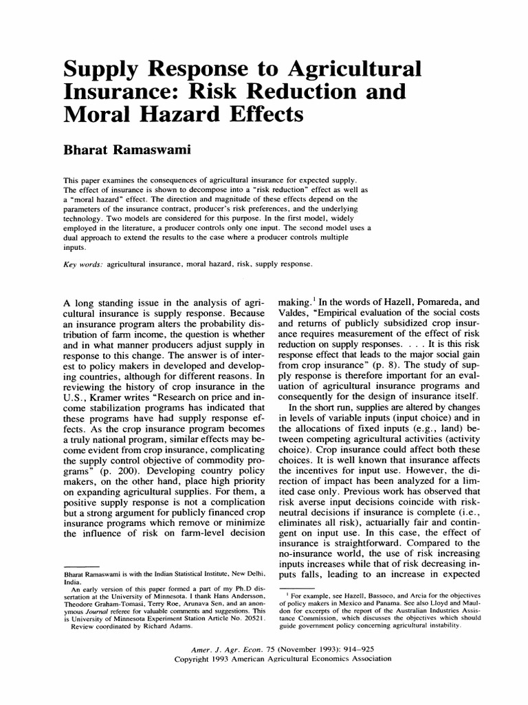 est to policy makers in developed and develop- from crop insurance" (p. 8). The study of sup-