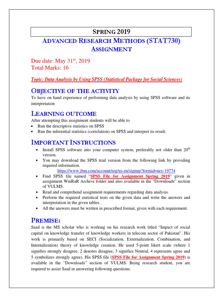 5 symbolizes strongly agree). His SPSS file (SPSS File for Assignment Spring 2019) is