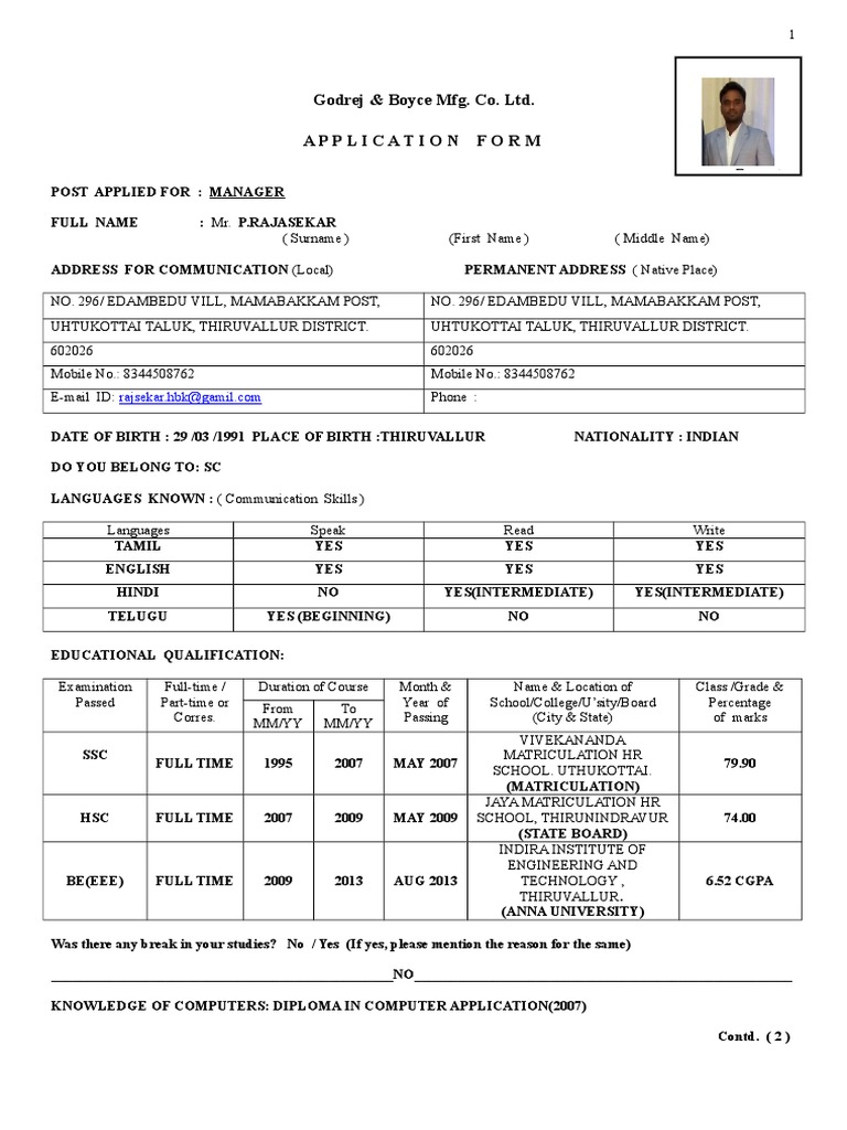 DATE OF BIRTH : 29 /03 /1991 PLACE OF BIRTH :THIRUVALLUR NATIONALITY : INDIAN