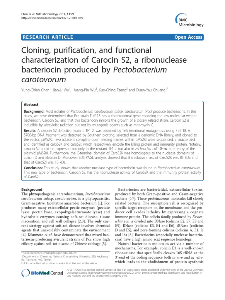 weight bacteriocin (carotovoricin Er) and Chuang et al. pMCL210 (Additional file 1, Figure S2). The carocin-