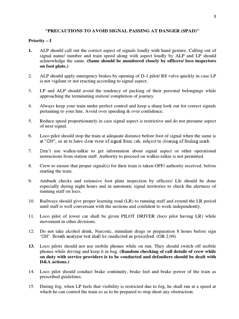 “PRECAUTIONS TO AVOID SIGNAL PASSING AT DANGER (SPAD)"