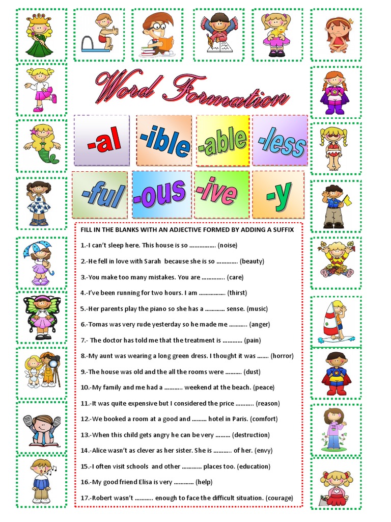 FILL IN THE BLANKS WITH AN ADJECTIVE FORMED BY ADDING A SUFFIX