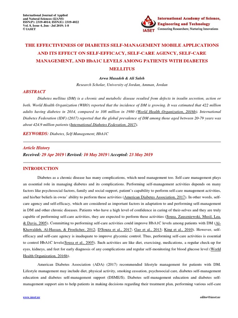 1. Al-Khawaldeh, O. A., Al-Hassan, M. A., & Froelicher, E. S. (2012). Self-efficacy, self-management, and glycemic