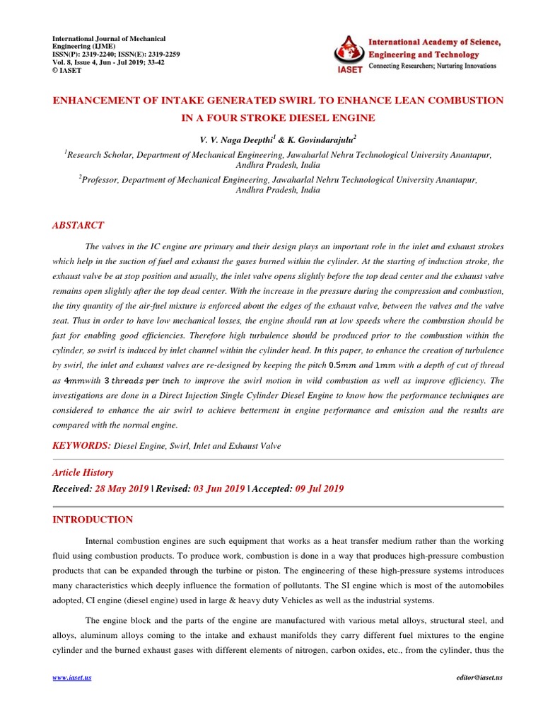 induction with internally threaded inlet manifolds. International Journal of Mechanical Engineering and