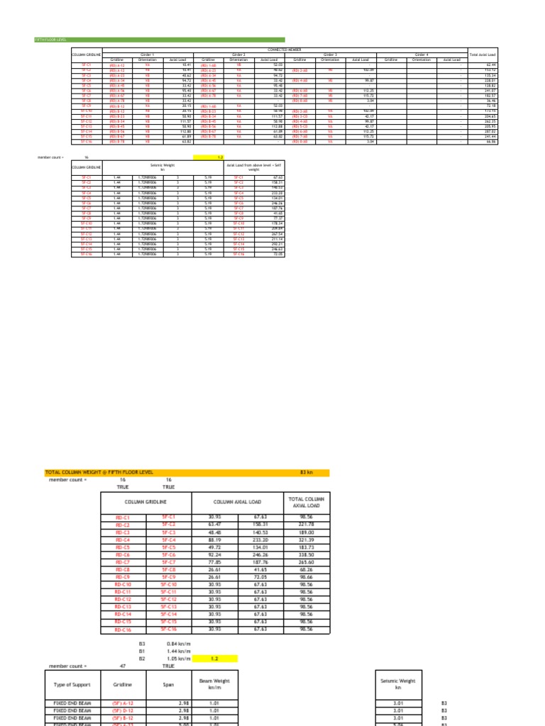 COLUMN GRIDLINE COLUMN AXIAL LOAD
