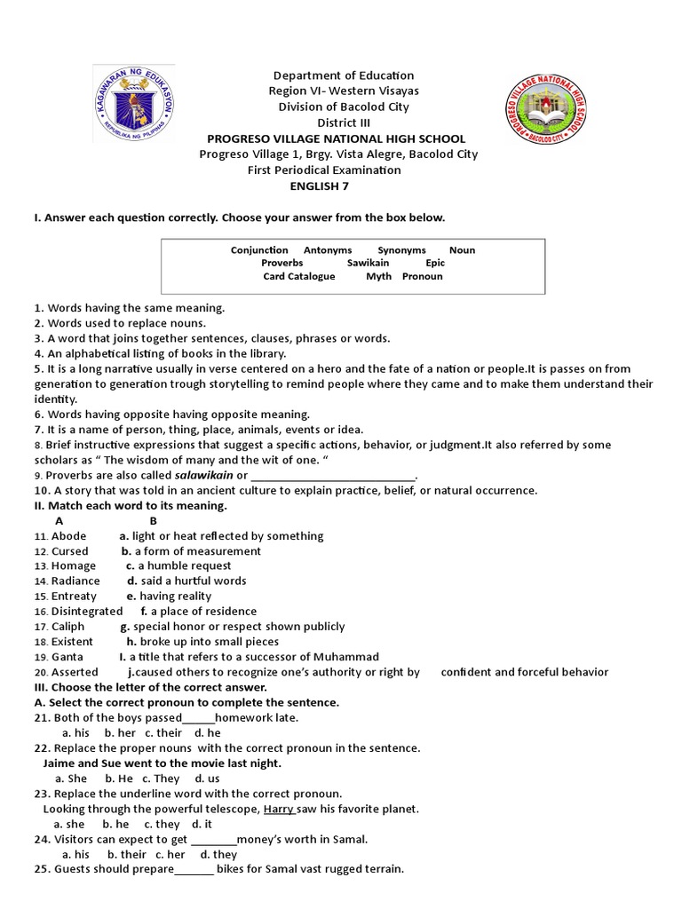 IV. A. Make a compound sentence by matching the independent clause in column A with the appropriate clause
