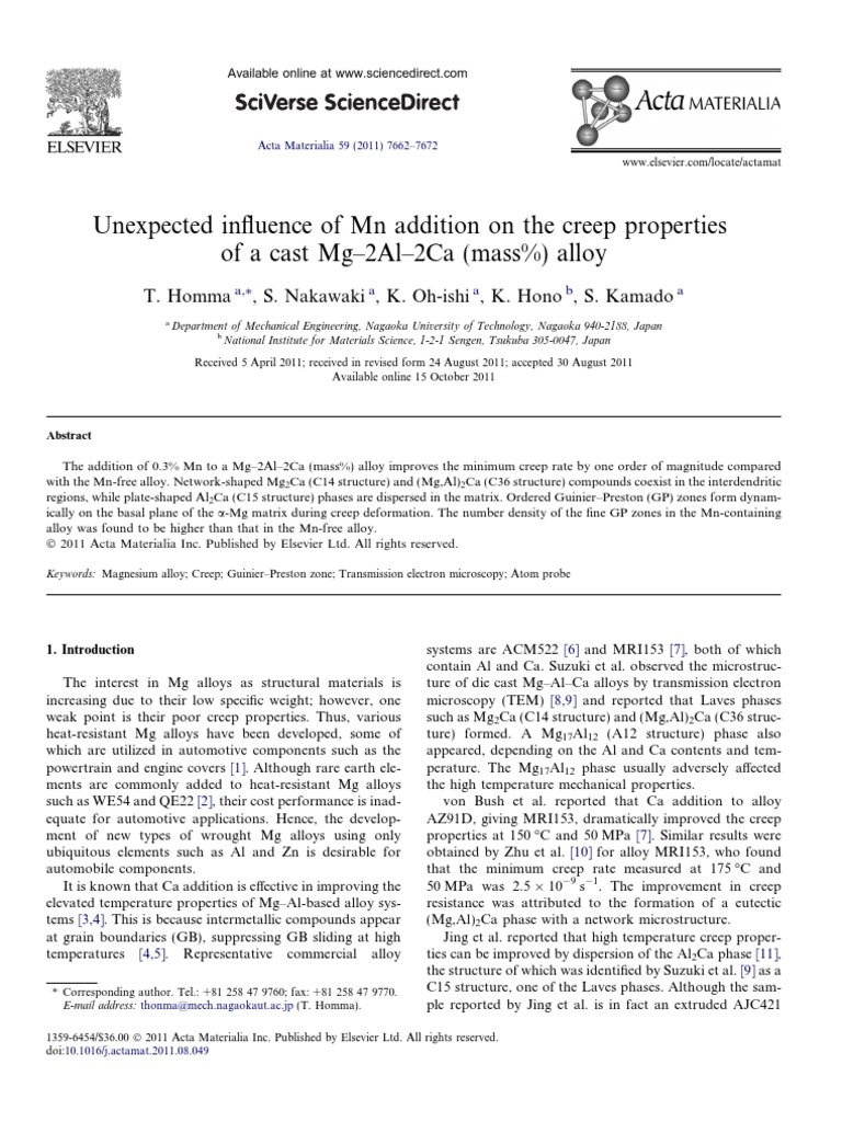 It is known that Ca addition is effective in improving the 50 MPa was 2.5 109 s1. The improvement in creep