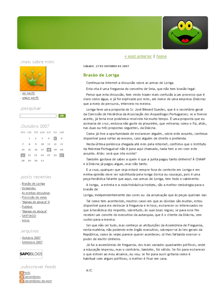 .posts recentes peça heráldica falante que aqui, nas armas de Loriga, tem todo o cabimento.
