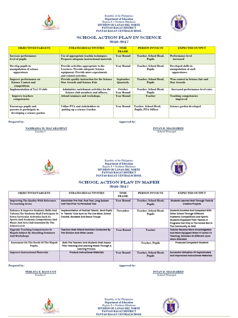 SCHOOL ACTION PLAN IN MAPEH