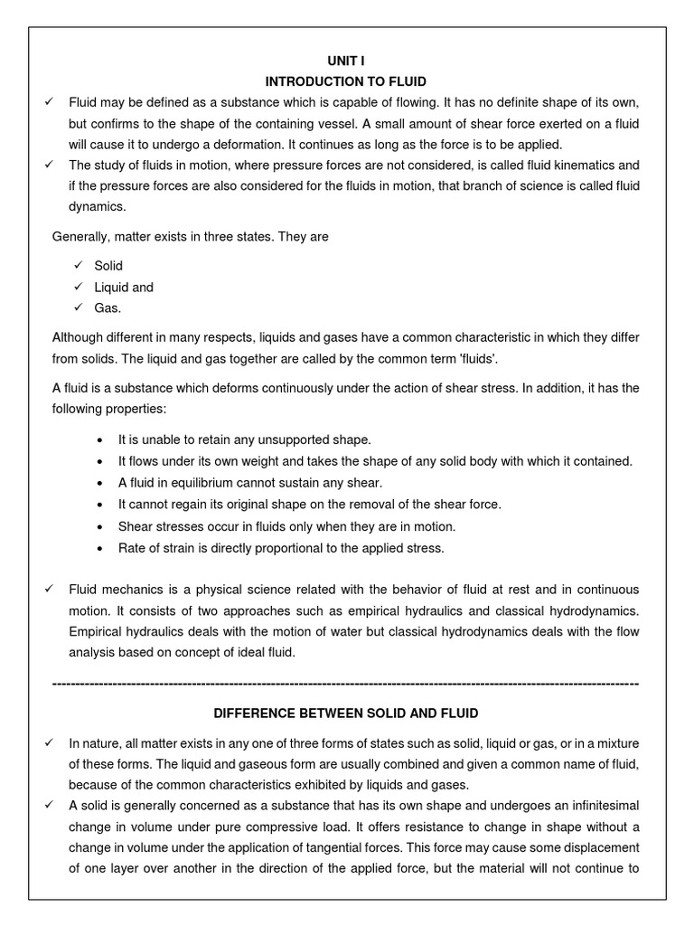 Fluid may be defined as a substance which is capable of flowing. It has no definite shape of its own,