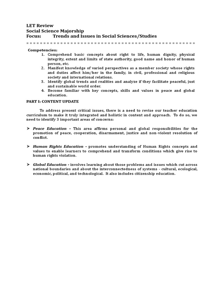 3. Identify global trends and realities and analyze if they facilitate peaceful, just