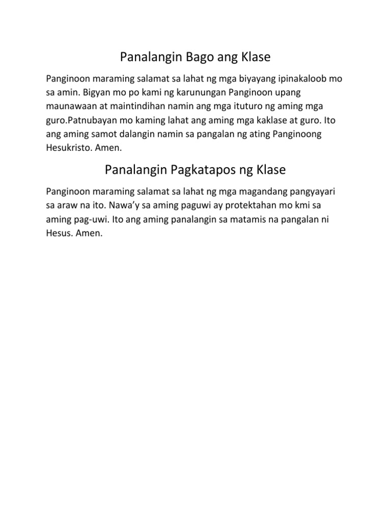Panalangin Bago ang Klase