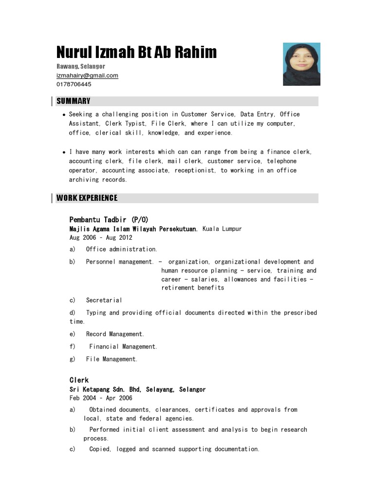 accounting clerk, file clerk, mail clerk, customer service, telephone