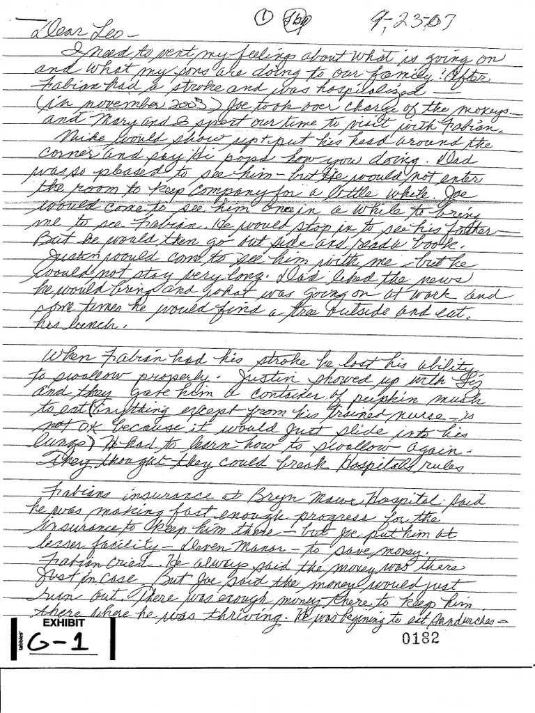 Letter from Genevieve Bush to her brother from 2007.