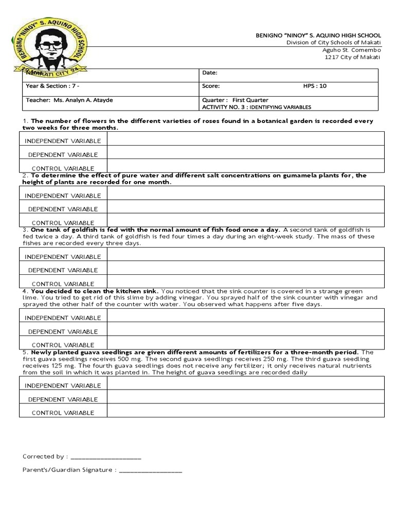 ACTIVITY NO. 3 : IDENTIFYING VARIABLES