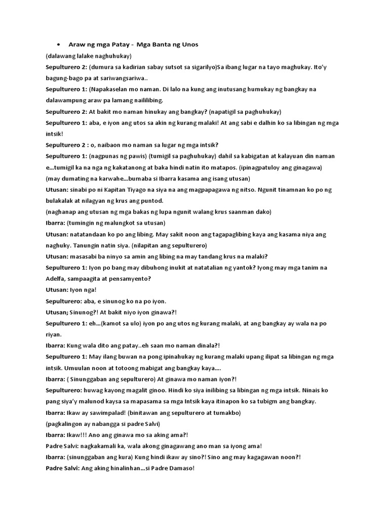 Utusan: sinabi po ni Kapitan Tiyago na siya na ang magpapagawa ng nitso. Ngunit tinamnan ko po ng
