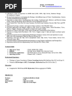 Over 7.5 years of experience as SQL Server Developer in the IT industry. Nearly 5 years of
