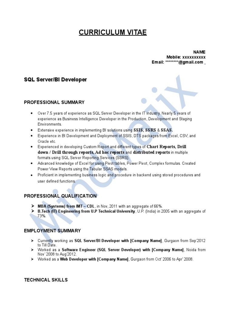 Currently working as SQL Server/BI Developer with [Company Name], Gurgaon from Sep’2012