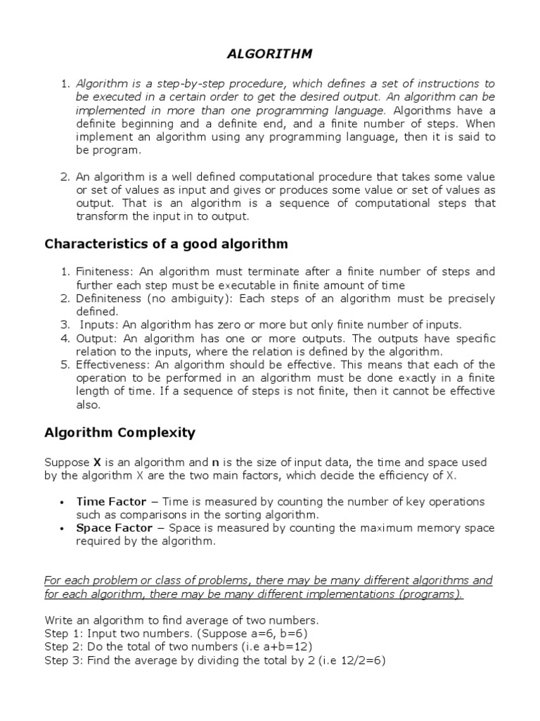 be executed in a certain order to get the desired output. An algorithm can be