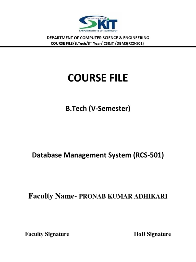 COURSE FILE/B.Tech/3rd Year/ CS&IT /DBMS(RCS-501)