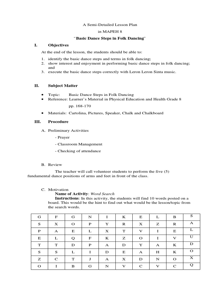 2. show interest and enjoyment in performing basic dance steps in folk dancing;