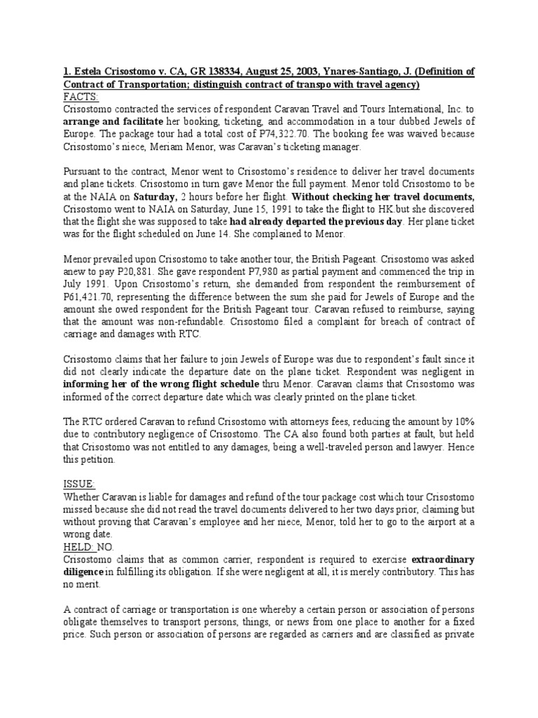 contracted for her carriage to Europe. Crisostomo’s transport pertained directly to the airline.